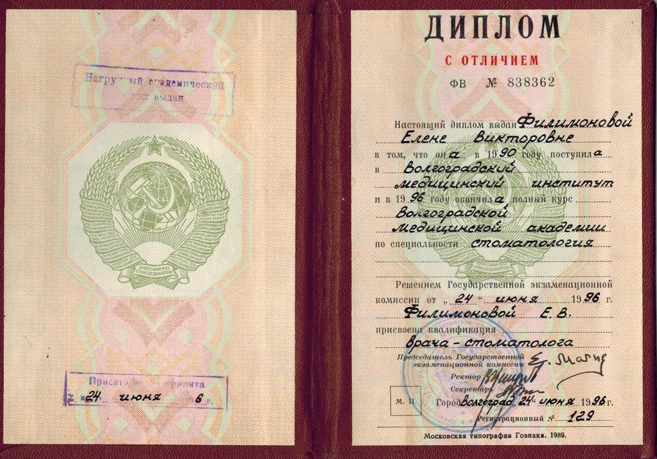 Квалификационная категория: Высшая квалификационная категория Образование: В 1996 г. с «отличием» закончила Волгоградскую медицинскую академию по специальности «Стоматология». В 1999 г. окончила клиническую ординатуру по специальности «Ортодонтия». В 2014 г. получила первичную специализацию по специальности «Организация здравоохранения, общественное здоровье».